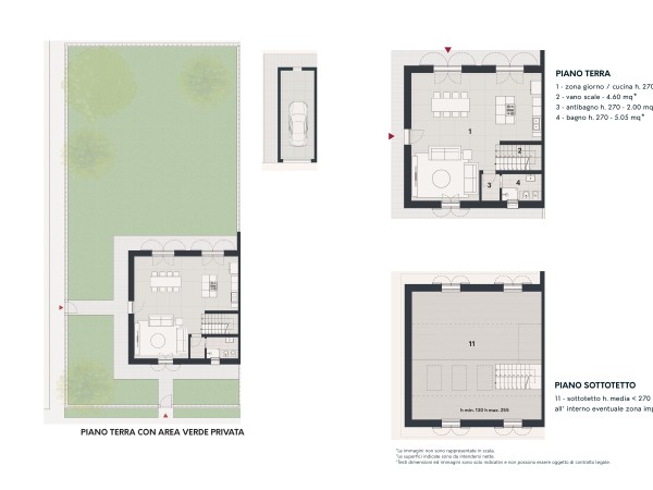 -Nel PIANO SOTTOTETTO troviamo una zona riservata agli impianti dell’ unità e il resto dello spazio libero configurabile come zona open space o suddivisibile in più ambienti in base alla volontà del cliente.
